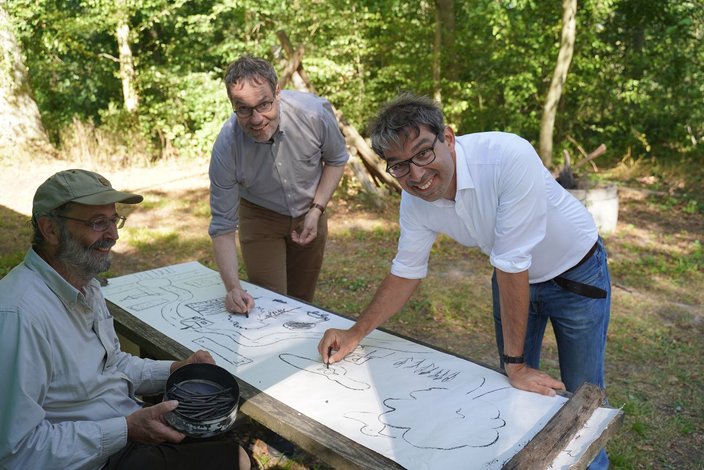 Im heutigen Termin, der im Lehrrevier der Jagdschule „Badische Jägerschmiede“ in Hambrücken stattfand, ließen die beiden Naturpädagogen Rainer Schall und Susanne Kaiser-Schmitt den Staatssekretär in das Thema Wildtierpädagogik eintauchen. Voller Begeisterung saugte er die vorgetragenen Themen auf und machte aktiv bei naturpädagogischen Spielen mit.