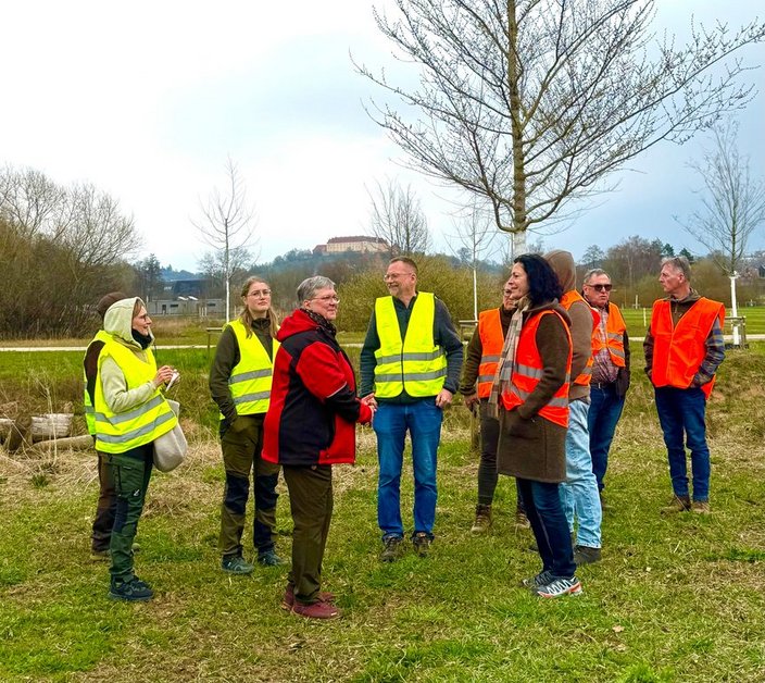 Am Nachmittag erhielten die Teilnehmenden bei der Begehung des zukünftigen Geländes der Landesgartenschau Ellwangen unter Leitung von Dipl. Biologe Alexander Pieh (bwgrün) einen praxisnahen Einblick. Ein einsetzender Regenschauer wurde dabei kurzerhand zur Lernchance und verdeutlichte, wie wichtig gute Planung inkl. Flexibilität im Grünen Klassenzimmer ist.