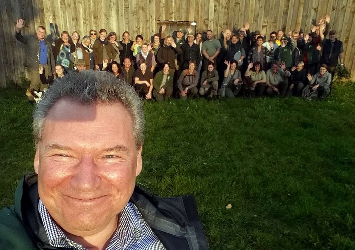 Höhepunkt der Tagung war die Verabschiedung von Klaus Lachenmaier, die am Samstagabend auf dem Dornsberg stattfand. Beim Hundezwinger wurde ein Lagerfeuer entfacht und Klaus Lachenmaier gebührend gefeiert: Jagdliche Lieder, eine Abschiedsrede, Hörnerklang und Geschenke zeigten ihm, wie sehr seine Arbeit über 20 Jahre geschätzt wurde. Sogar der Wettergott spielte mit einem herrlich warmen Spätsommerabend mit. Die Naturpädagogen hießen Sophia Lorenzoni, die Klaus Lachenmaier ablöst, herzlich willkommen und freuen sich auf die künftige Zusammenarbeit mit ihr.